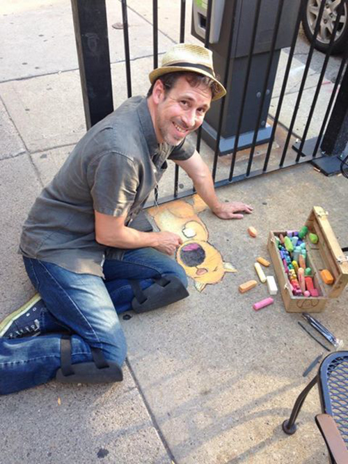 Creation David Zinn David Zinn is an artist from Michigan. He runs around all day in the streets of Ann Arbor, with street construction, cracks, etc. on the road with chalk to create a lot of street fairy tales.